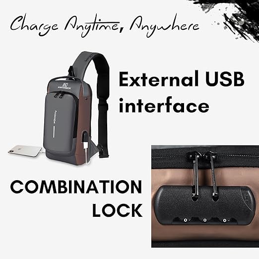 Wayfare - شنطة كتف مضادة للسرقة بمنفذ شحن USB وقفل بكلمة مرور وتصميم متعدد الجيوب للارتداء على الكتف أو بوضعية كروس من وايفير