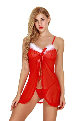 WDZOWU - ملابس نوم لانجيري دانتيل للكريسماس للنساء من دبليو دي زد او دبليو يو