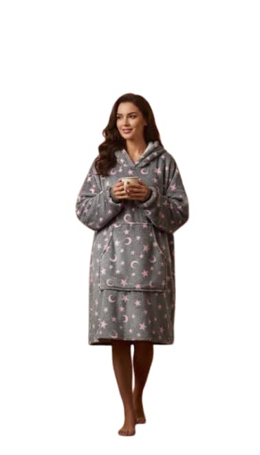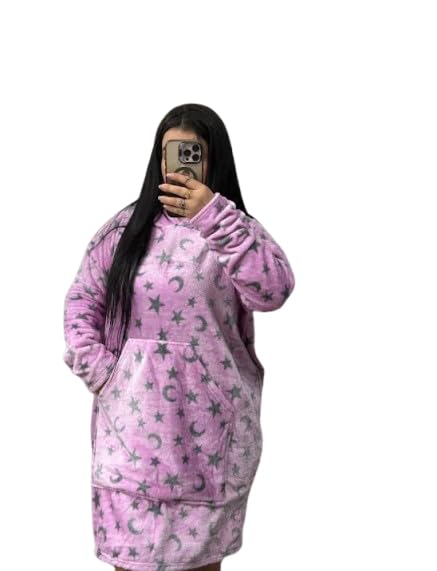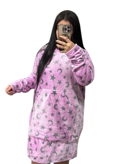 Generic - Wearable Blanket for Women, Pink, Hooded Blanket with Moon and Star Pattern - one size fits all