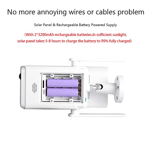 - مصدر طاقة بدون أسلاك بدون توقف: كاميرا المراقبة الخارجية التي تعمل بالبطارية ببطاريات مدمجة قابلة لإعادة الشحن وتعمل بشكل مستقر مع واي فاي 2.4GHz، مما يجعل تركيبها بدون أسلاك بنسبة 100%. مزود طاقة بدون توقف للوحة الشمسية، تجنب إزعاجك من إزالة كاميرا المراقبة التي تعمل بالطاقة الشمسية لإعادة الشحن.