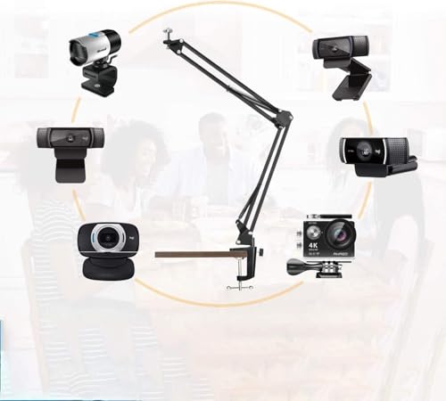 Generic - Webcam Stand Suspension Scissor Durable Bracket with Desk Clamp Mount-Built-in 1/4" Screw for Logitech Webcam C930e,C930,C920,C922x,C922,Brio 4K, C925e,C615,Gopro Hero 7/6/5/4 and Phone (Black)