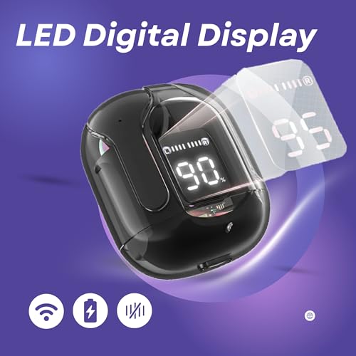 - WIRELESS DESIGN: True wireless earbuds with digital display showing battery level and connection status for convenient monitoring