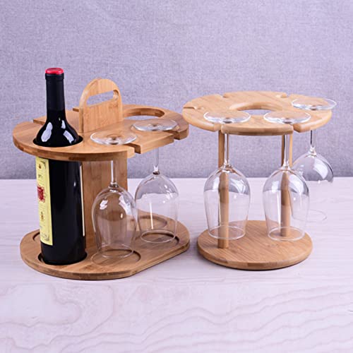 WEBEEDY - WEBEEDY Natural Bamboo Wood Wine Glass Holder, Countertop Wine Glass Drying Rack and Bottle Holder, Freestanding Stemware Storage Organizer Stand Set Holds 1 Bottle and 6 Glasses