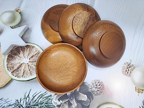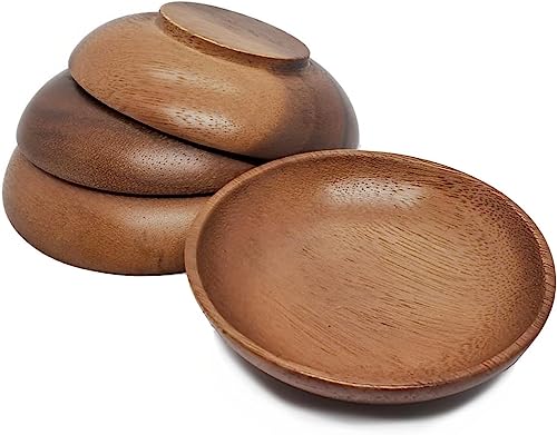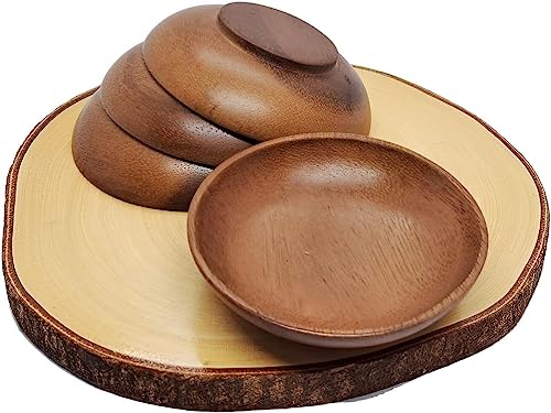 WEBHUSHI - وعاء خشبي دائري صغير مقاس 3 انش من ويبهوشي للزيتون والبهارات وصلصة الغمس والمكسرات والحلوى والفواكه والمقبلات والوجبات الخفيفة اوعية خشبية كالاباش بقطر × ارتفاع 1 - مجموعة 4 قطع خشب السنط