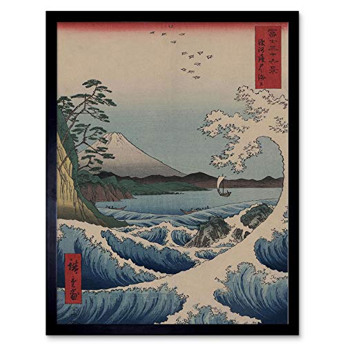Wee Blue Coo - Wee Blue Coo Utagawa Hiroshige Japanese Sea Off Satta Old Painting Art Print Framed Poster Wall Decor 12X16 Inch