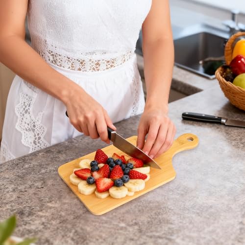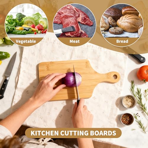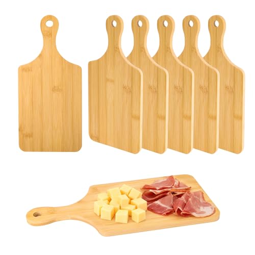 WeeGoo - لوح تقطيع من الخيزران السميك 6 قطع من ويجو، الواح تقطيع خشبية بمقبض مقاس 28 × 5 × 0.8 انش، لوح تقطيع لتقديم الطعام للمطبخ وتشاركوتيري والبيتزا والفواكه والخضروات واللحوم والخبز