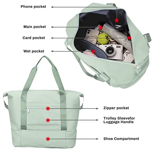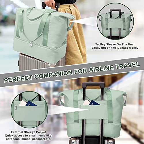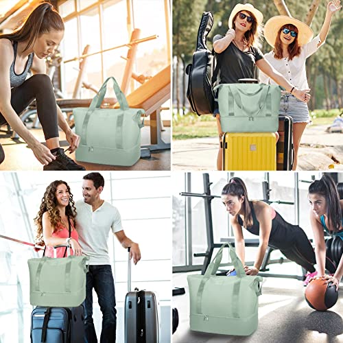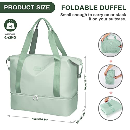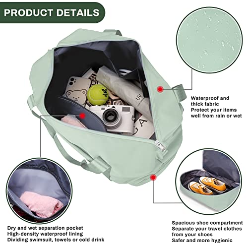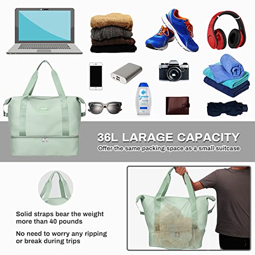 Welltop - شنطة نسائية دافل محمولة بسعة 36 لترا بتصميم مقاوم للماء وقابل للطي ومزودة بشنطة باوتش للاحذية واخرى للفصل بين الاغراض الرطبة والجافة، مناسبة لعطلات نهاية الاسبوع وصالة الالعاب الرياضية, أخضر