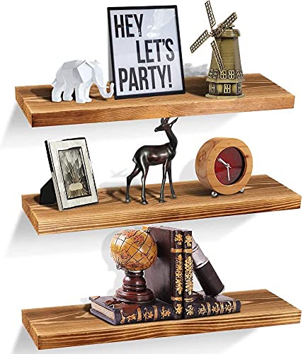 Wefour - رف حائط خشب لديكور المنزل، حامل كتب يثبت على الحائط ، وحدة تخزين للمنزل من وي فور، مقاس 40.6×16.5×2.5 سم، طقم من 3 قطع