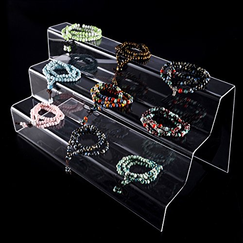 - MULTI-FUNCTION: The 3 Step Stair Jewelry Display Shelf features 2.3" deep steps that are deal for displaying and organizing Amiibo Funko POP Figures, cosmetics, jewelry, toiletries, or any other knickknacks.