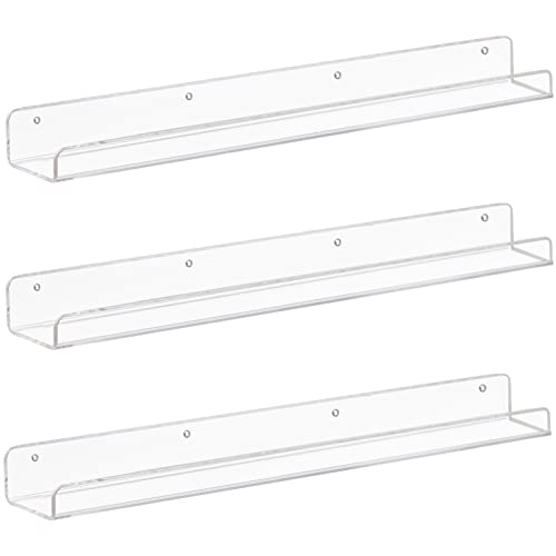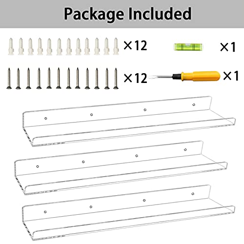 Weiai - Weiai Clear Acrylic Floating Shelves 24 inches, Wall Bookshelf for Kids, Transparent Book Shelf Ledge for Wall, Set of 3