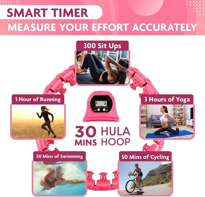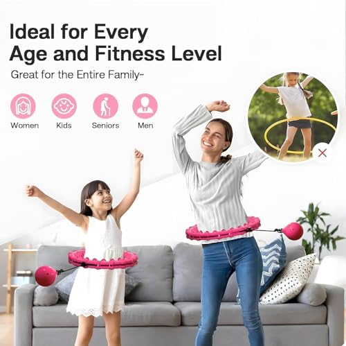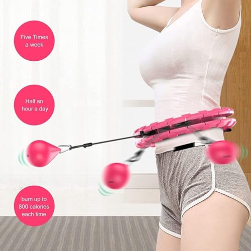 Generic - Weighted Hula Hoop for Adults Infinity Hoop Large Size 24 Detachable Knots, 2 in 1 Abdominal Massage Fitness Smart Hula Hoops Suitable for Women Exercise and Beginners, Pink