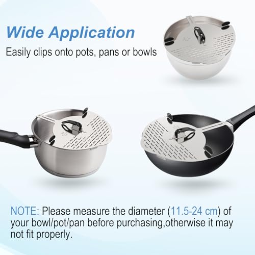 - Compatibility: This strainer can be easily installed on the edges of pots, pans, plates, or bowls with diameters ranging from 4.6 inches(11.5cm) to a maximum of 9.4 inches (24cm). Perfect for straining vegetables, fruits, pasta, and beans.