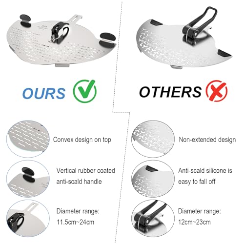 - Upgraded Design: Adjustable stainless steel filter with added semi-circular design on top, allowing it to adapt to a wider range of bowl shapes.