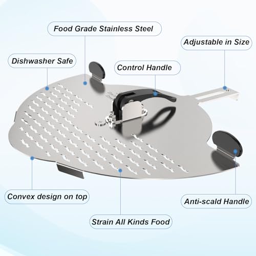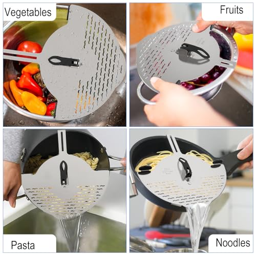 - Effortless Hands-Free Food Straining: Securely clip and attach this adjustable stainless steel clip on strainer to the edges of pots, pans, plates, or bowls. Say goodbye to bulky metal colanders and food strainers, and welcome more space in your kitchen.