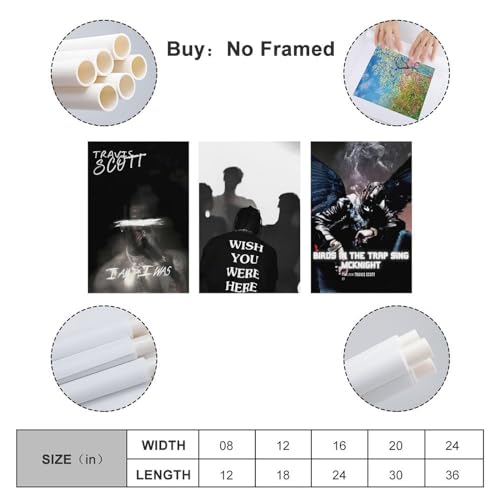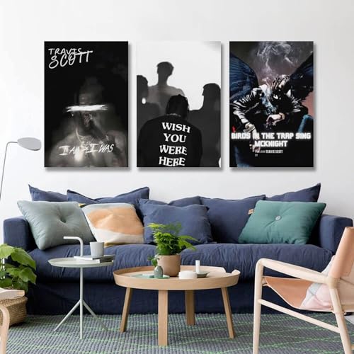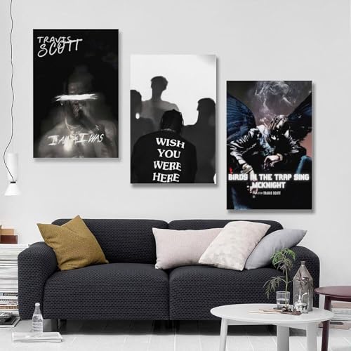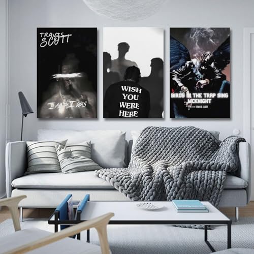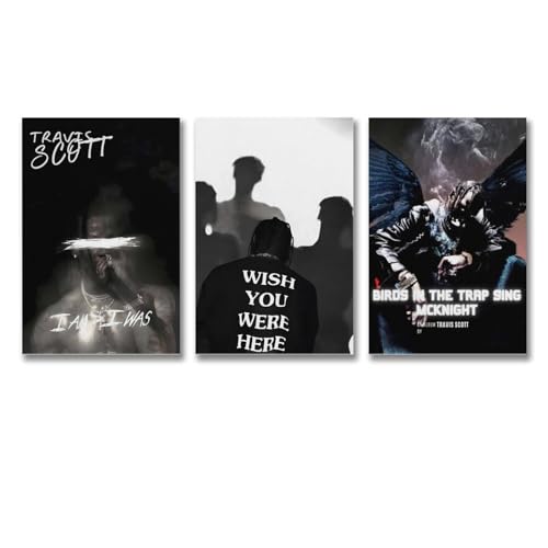 WEIJUNMAOYI - 3 قطع من بوستر ترافيس سكوت - ملصق فني بسيط مطبوع عليه Travis Scott بعبارة Birds In The Trap Sing McKnight قماشي للحائط طراز بدون إطار