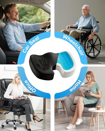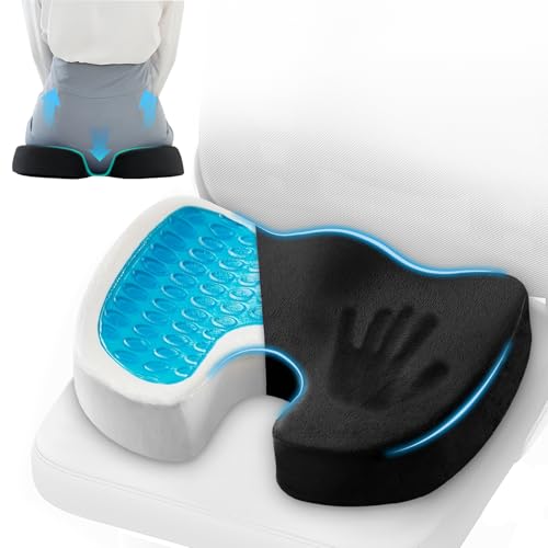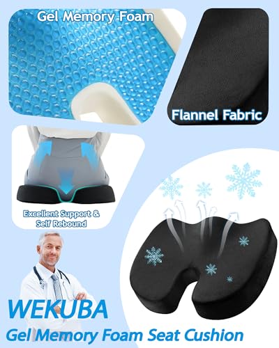WEKUBA - Gel Memory Foam Seat Cushion for Coccyx Pain Relief,Ergonomic U-shaped Seat Cushion,Pressure Relief,Office Chair Cushion for Desk Chair, Car Seat, Airplane and Wheelchair (Black)