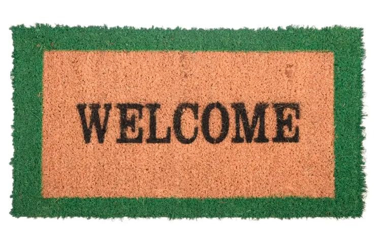 - تصميم جذاب: يتميز برسالة "ترحيب" كلاسيكية بنص أسود على خلفية من جوز الهند الطبيعي مع حواف خضراء مزخرفة لمزيد من الجاذبية البصرية