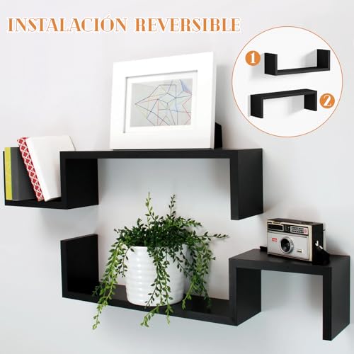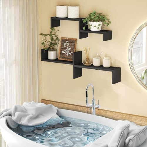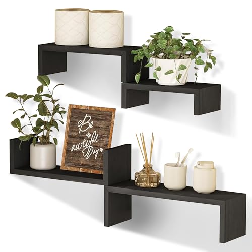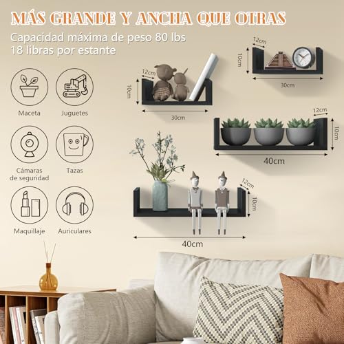 WELIKERA - ارفف عائمة من ويليكيرا، ارفف حائط عائمة على شكل حرف U بمقاسين مختلفين 40 سم × 12 سم و30 سم × 12 سم، مجموعة من 4 ارفف متعددة الاستخدامات لغرفة النوم والمطبخ والحمام وغرفة المعيشة والمكتب (اسود)