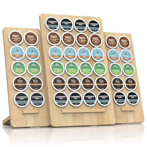 WELL WENG - ويل وينغ حامل اكواب كيه مكون من 3 قطع، حامل كبسولات قهوة من الخيزران الفاخر، حامل عرض مع كيوريج
