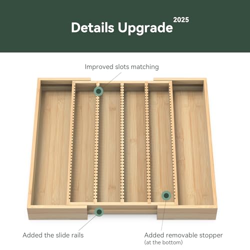 - 【𝗦𝘁𝘂𝗿𝗱𝘆 𝗖𝗼𝗻𝘀𝘁𝗿𝘂𝗰𝘁𝗶𝗼𝗻 𝗮𝗻𝗱 𝗘𝗮𝘀𝘆 𝗠𝗮𝗶𝗻𝘁𝗲𝗻𝗮𝗻𝗰𝗲】This drawer organizer is strong enough to store in place. This bamboo organizer can be wiped down quickly with warm water and a simple wipe with a damp cloth