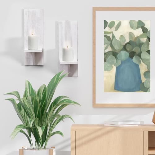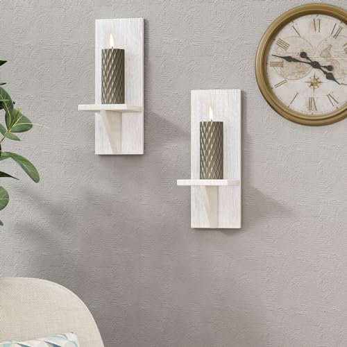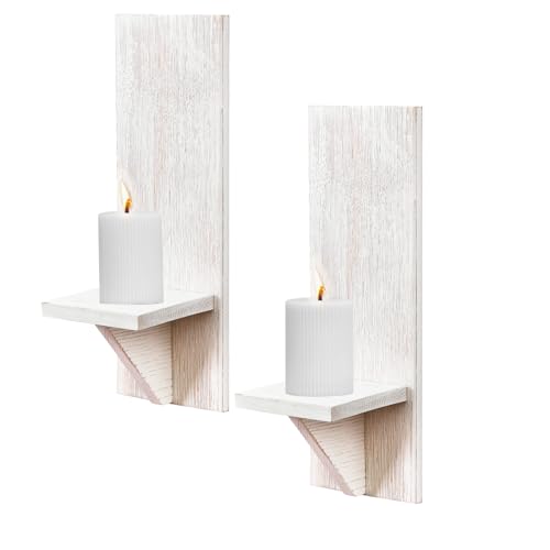 WELLAND - WELLAND Wall Mount White Candle Holders Wall Planter Holder Hanging Wall Sconces Farmhouse Wall Decor Floating Shelves Set of 2