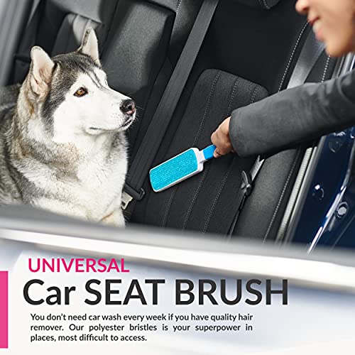 WELLTED - فرشاة ازالة شعر الحيوانات الاليفة والوبر بتصميم مزدوج الجوانب مع قاعدة ذاتية التنظيف، مناسبة للكنبة والاثاث والملابس ومقاعد السيارة والسرير والسجاد من ويلتد (ازرق)