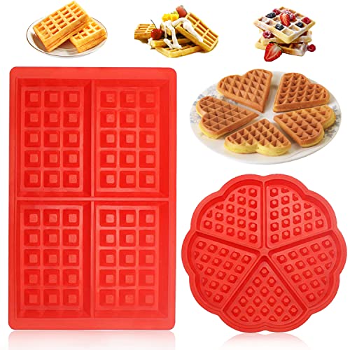 WELLXUNK - WELLXUNK Silicone Waffle Mould, YIKEF Waffle Baking Molds Bakeware, High Quality Muffin Mould Non Stick Baking Pan, Mini Heart Shape & Square