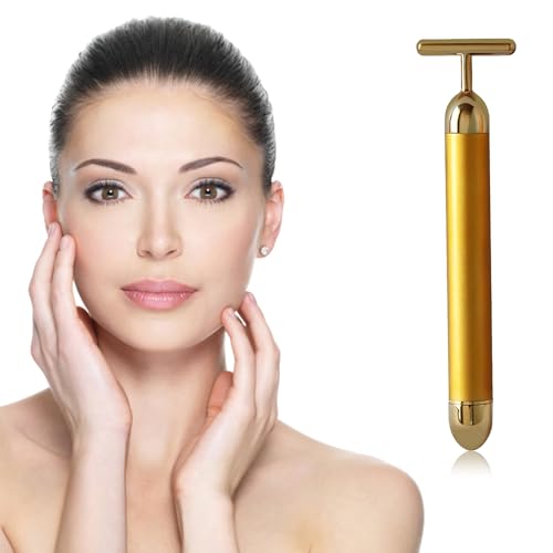 WENJION - 24K Gold Face Massager Electric, T-Shape & 3D Roller Facial Massage Tool, Pulse Firming & Lifting Skin Care Device for Eyes, Nose, Face & Neck, Anti-Aging Treatment for Sensitive Skin