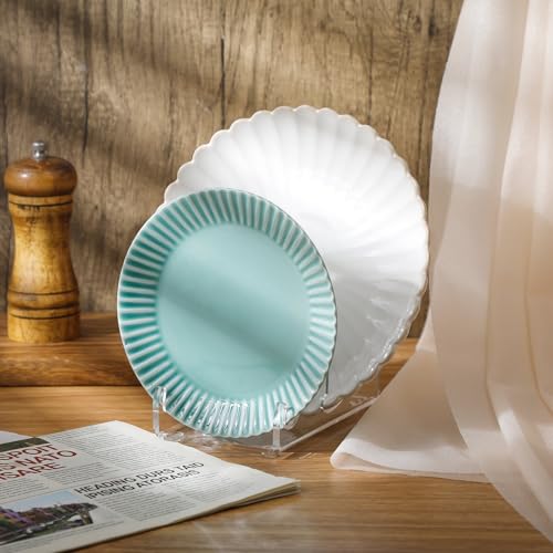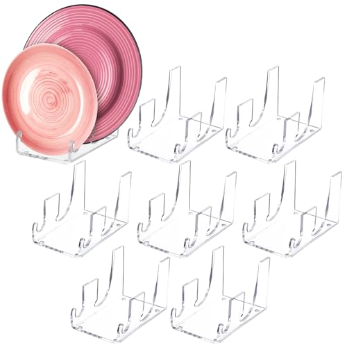 Wenqik - حامل اكريليك لعرض الأطباق الصيني يتضمن مستويين من وينكيك، حامل عرض شفاف لأطباق المائدة والأطباق الصيني، رفوف عرض الأطباق لتنظيم دولاب المطبخ، 8 قطع