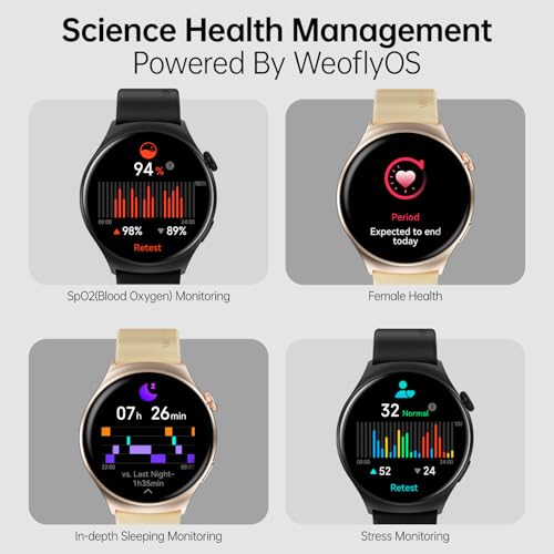 Weofly - Curve Smart Watch for Women Men, 1.43" AMOLED Smartwatch with Bluetooth Calling Heart Rate/Blood Oxygen/Sleep/Stress Monitoring 178+ Sports Modes IP68 Waterproof (Black)