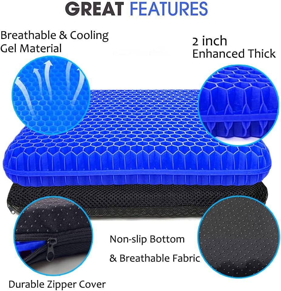 - وضعية جلوس مريحة وصحيحة: وسادة مقعد جل لراحة الجلوس لمدة تزيد عن 8 ساعات. أحدث وسادة مقعد جل زرقاء مصنوعة من بوليمر فائق النعومة. تناسب وسادة المقعد الداعمة المصنوعة من الجل عظم الذنب وعظمة الجلوس لتوفير أقصى قدر من الدعم والراحة مع تقليل التوتر وتعزيز الوضعية الصحية.