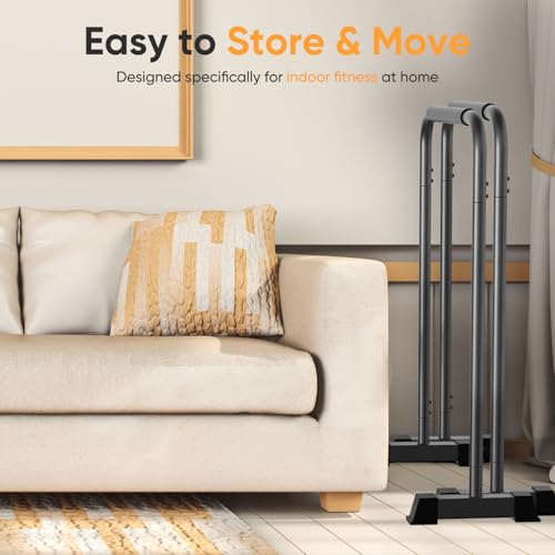 - 2 in 1 Design The parallel bars can be adjusted from 35.5 inches high to 11.8 inches high. Whether for dips, L-Sit, Inverted Row or Push-ups, handstands, Tuck Plank - the dip bars are perfect for upper body and core training.