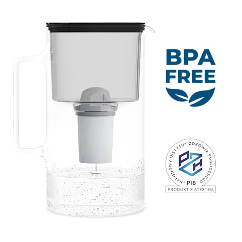 Wessper - متوافق مع خراطيش فلتر المياه بريتا كلاسيك من ويسبر، ابريق زجاجي سعة 2.5 لتر مع فلتر مياه. تتضمن خرطوشة فلتر مياه واحدة للحد من تراكم الرواسب الكلسية والكلور