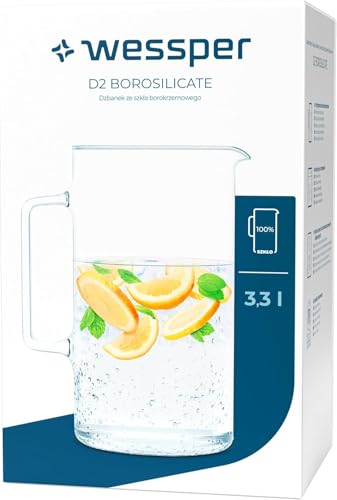Wessper - Wessper D2 Borosilicate Glass Pitcher, Heat-Resistant, 3.3L, Clear