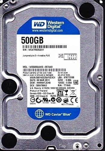 Western Digital - قرص صلب ويسترن ديجيتال بسعة 500 جيجابايت لون ازرق ( 7200 دورة في الدقيقة )، ata