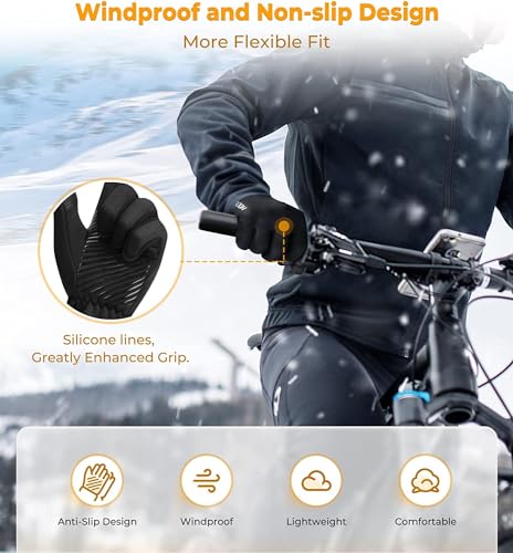 WESTWOOD FOX - WESTWOOD FOX Cycling Gloves for Men and Women, Warm Thermal, Anti-Slip, Touchscreen, Windproof Fleece Winter gloves for Running, Hiking, Cycling, Driving and Outdoor Activities