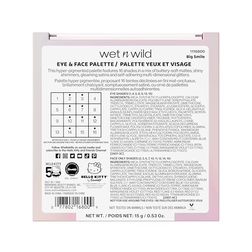 Wet n Wild - wet n wild Hello Kitty Eye & Face Palette, 2 Bold Richly Pigmented Palettes, Multi-Functional Buildable and Blendable Formula, Cruelty-Free & Vegan - Big Smile