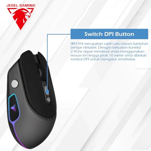 Generic - WH104 Wireless Mouse – Rechargeable Dual Mode (2.4G + Bluetooth 5.1), Adjustable DPI up to 3200, Ergonomic Design with RGB Lighting – Black