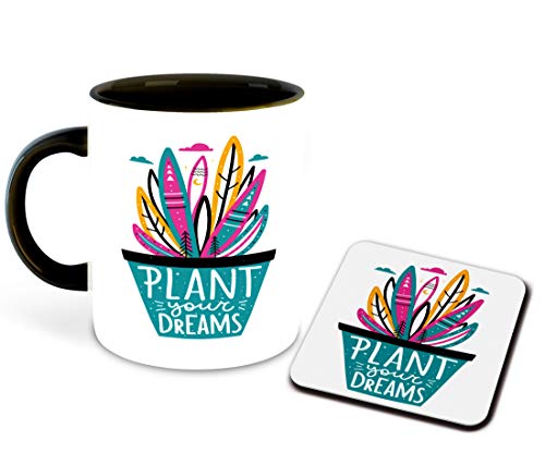 WHATS YOUR KICK - WHATS YOUR KICK Gardening Inspiration Printed Black Inner Colour Ceramic Coffee Mug with Coaster- Gardening Quotes, Flower, Best Gift | Gardening, Horticulture, Flower, Weed, Nature (Multi 7)