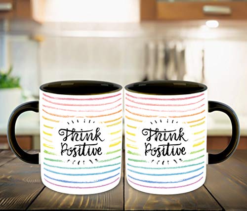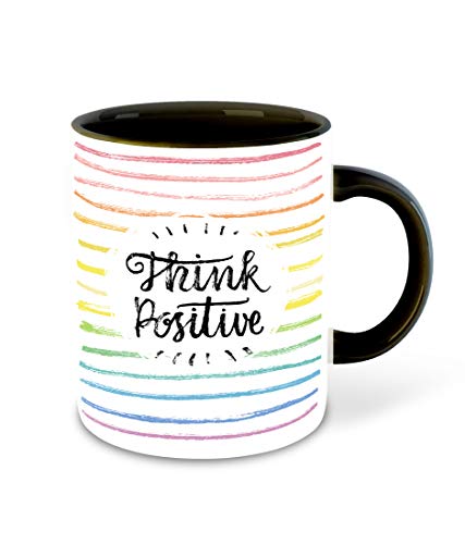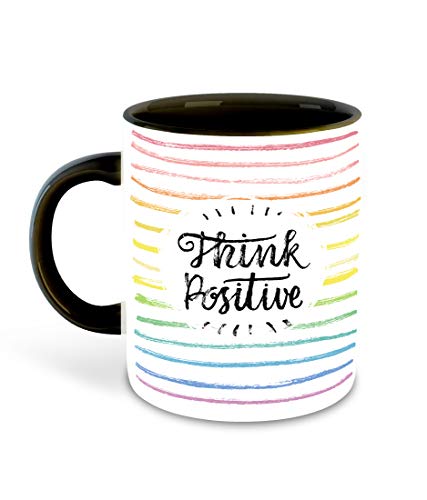 WHATS YOUR KICK - WHATS YOUR KICK® Think Positive Inspiration Printed Black Inner Colour Ceramic Coffee Mug- Think Positive Quotes, Success, Best Gift | Motivation, Positive Thoughts (Multi 1)