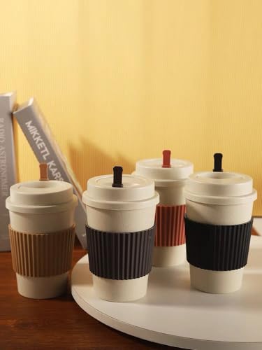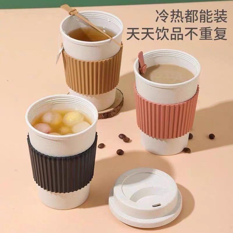 Generic - Wheat Straw Coffee Cup Creative Simple Lightweight Luxury Portable Plastic Water Cup Sealed Juice Cup Gift for Occasions-480ml (Grey)
