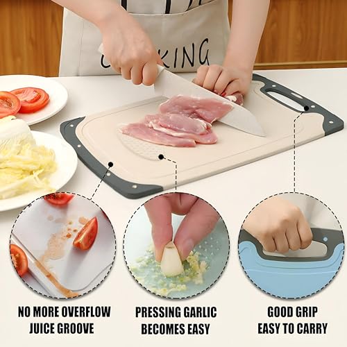 Generic - Wheat Straw Kitchen Blanche - Size 2 * 1, Chopping Board and Garlic Puree Made of Eco-Friendly Wheat Straw, Designed with Non-Slip Features, Juice Holes, Easy Grip Handles, Large Size 40 * 25cm