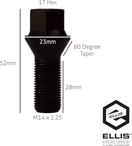 - مسمار عجلات مقاس M14x1.25 من الستيل المطروق على البارد اسود بديل ، مناسب للعلامات الألمانية قفال عجلات اكسسوارات صواميل العجلات عدد (4 قطعة)