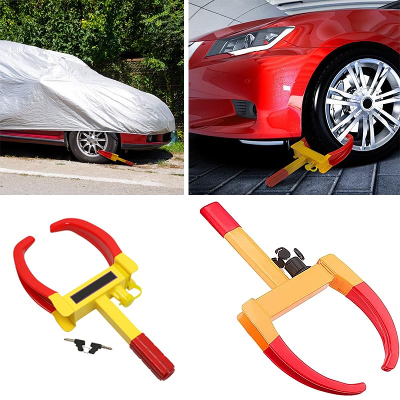 - ✅ This durable lock is the perfect anti-theft tool. It will completely prevent the wheel from rolling or twisting A must have for keeping your cars safe Fits most vehicles such as cars, trucks, motorcycles, SUV, RV, camping golf cars, mini-plane, boat trailers, scooters, shifters and lawn mowers.