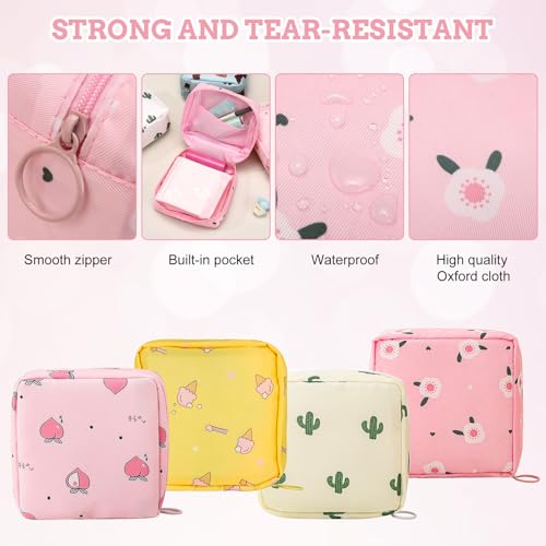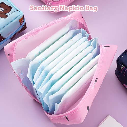 WHENZOO - 4 pcs Sanitary Pad Storage Bag, Sanitary Napkin Storage Bags, Period Bag with Zipper, Portable Large Capacity Period Bag for School, Small Storage Bag for Female Girls