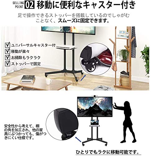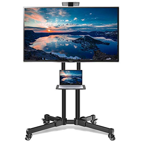 WHESWELL - حامل تلفزيون ارضي بعجلات بارتفاع قابل للتعديل لشاشة بلازما مسطحة 32-70 بوصة LCD LED 4K مع رف يحمل حتى 110 رطل 600x400 ملم من ويويل