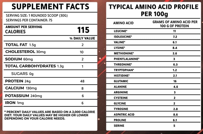 - مظهر كامل من الأحماض الأمينية مع أحماض أمينية متفرعة السلسلة والجلوتامين: غني بشكل طبيعي بـ 6.5 جرام من الأحماض الأمينية متفرعة السلسلة و5.2 جم من الجلوتامين لكل وجبة، وهو ضروري لتعافي العضلات والقدرة على التحمل وإصلاح ما بعد التمرين.