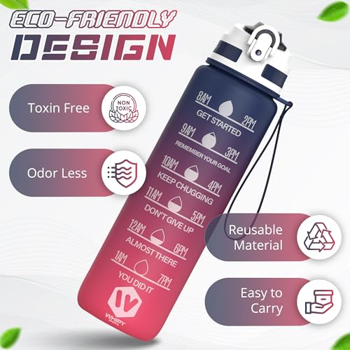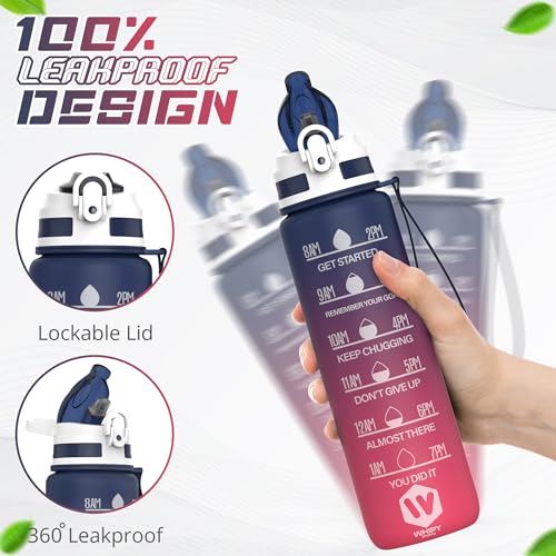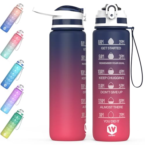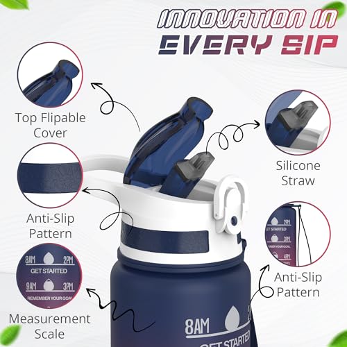 WHIPY - 500ML Water Bottle with Straw - Leak-Proof & BPA Free Reusable Sports Bottle - Motivational Time Markings for Hydration Durable Drink Bottle for Gym, Sports, Outdoor, Cycling (Blue & Red)
