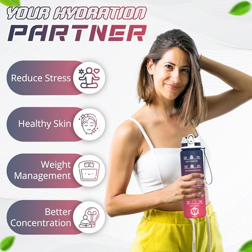 - 1L Capacity for Sustained Hydration: Enjoy ample hydration with our 1L water bottle, ensuring you stay hydrated throughout your day. Perfect for those who need an on-the-go hydrating companion