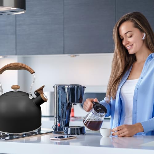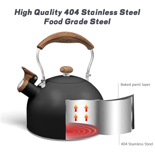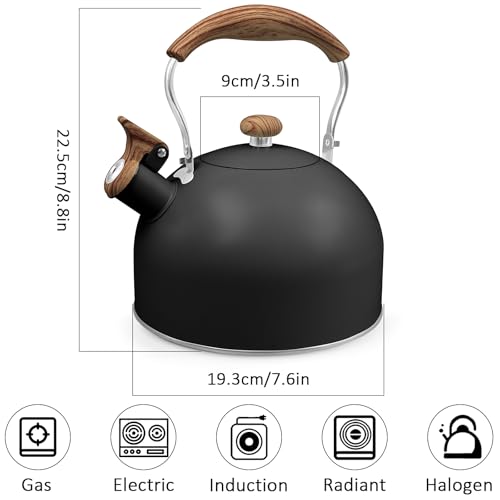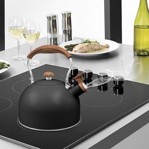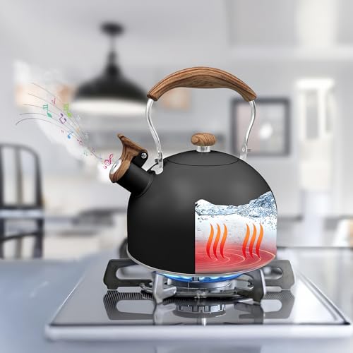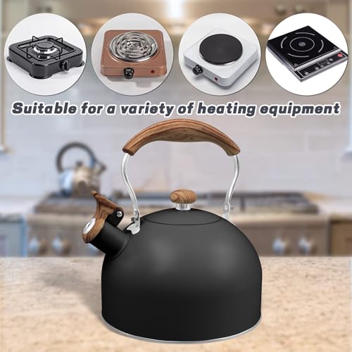 Kaxtde - Whistling Tea Kettle 2.5L Stainless Steel Tea Pots with Wood Pattern Folding Handle, Whistling Water Kettle, Stovetop Whistling Teapot for Tea, Coffee, Milk(Black)
